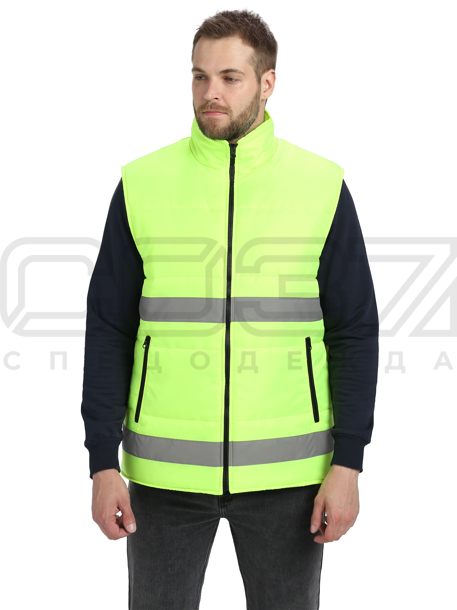 Жилет сигнальный утеплённый "Квазар" с СОП цв.лимонный тк.оксфорд в Уфе