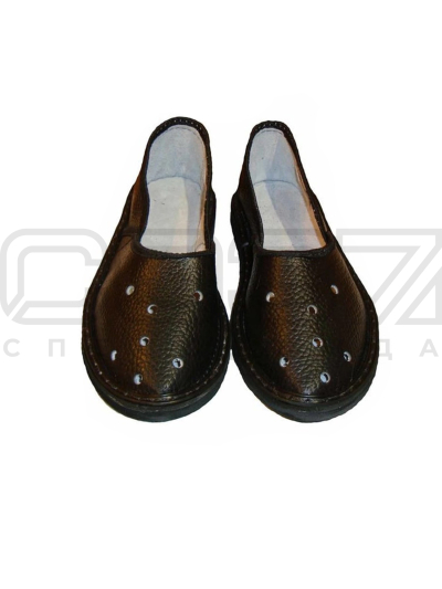 Тапочки нат.кожа неткан. полотно с перфорацией подошва пористая резина цв.чёрный в Уфе