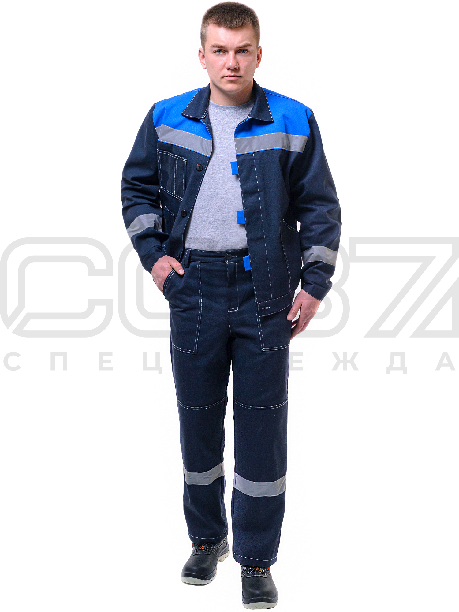 Костюм рабочий "Липецк" с СОП цв.т.синий/василёк тк.Барьер-1 (куртка+брюки) в Уфе