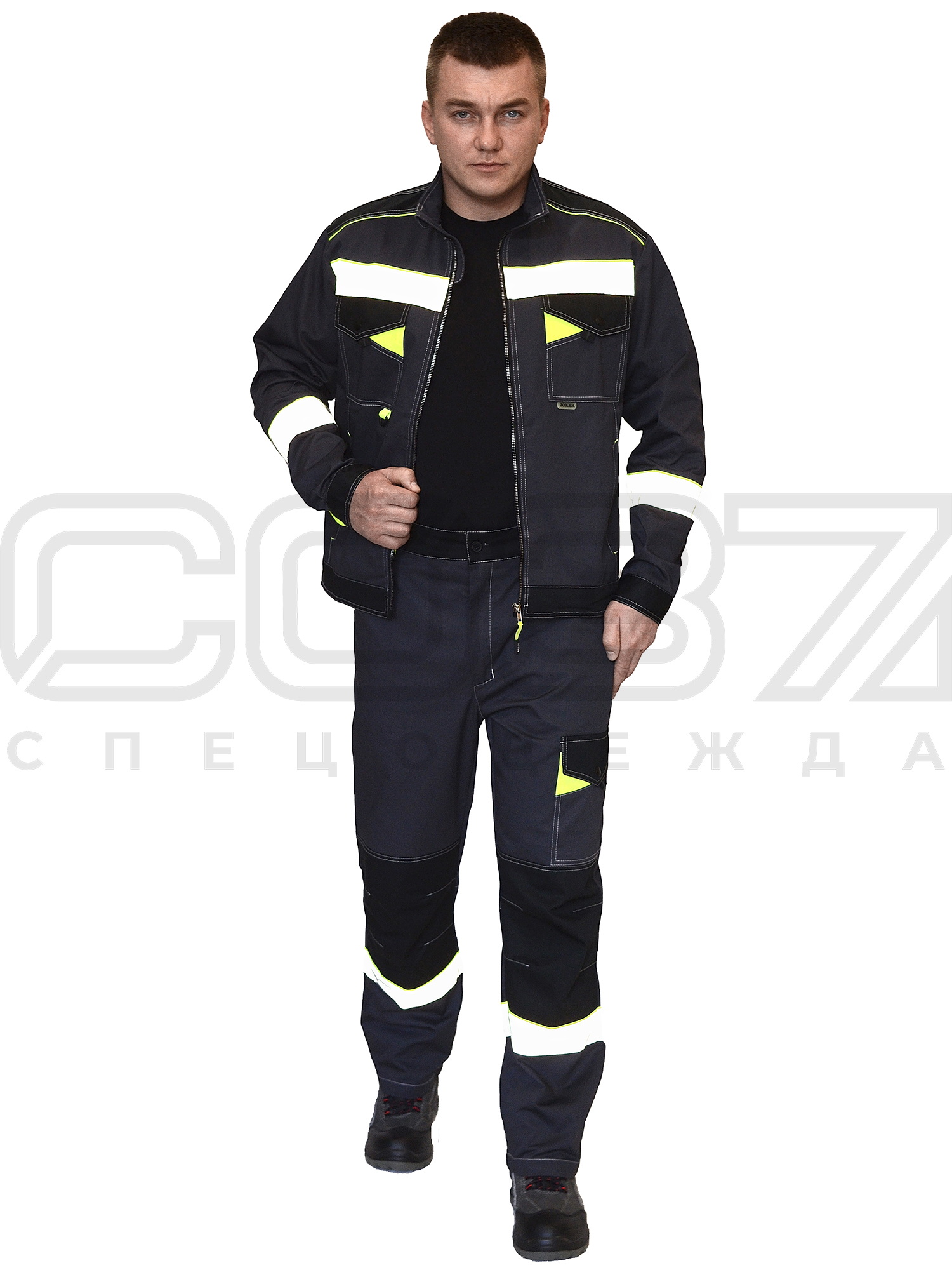 Костюм рабочий "Фрегат Коттон" с СОП цв.т.серый/чёрный/лимон тк.смесовая с МВО (куртка+брюки) в Уфе