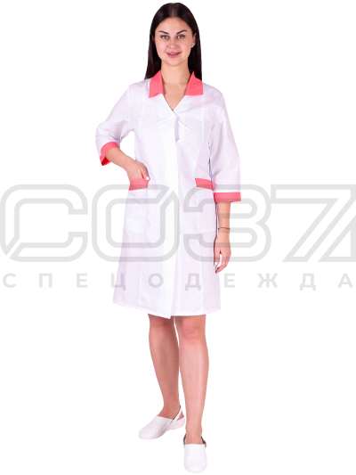 Халат медицинский женский "Аспирант" цв.белый/коралл тк.тиси в Уфе