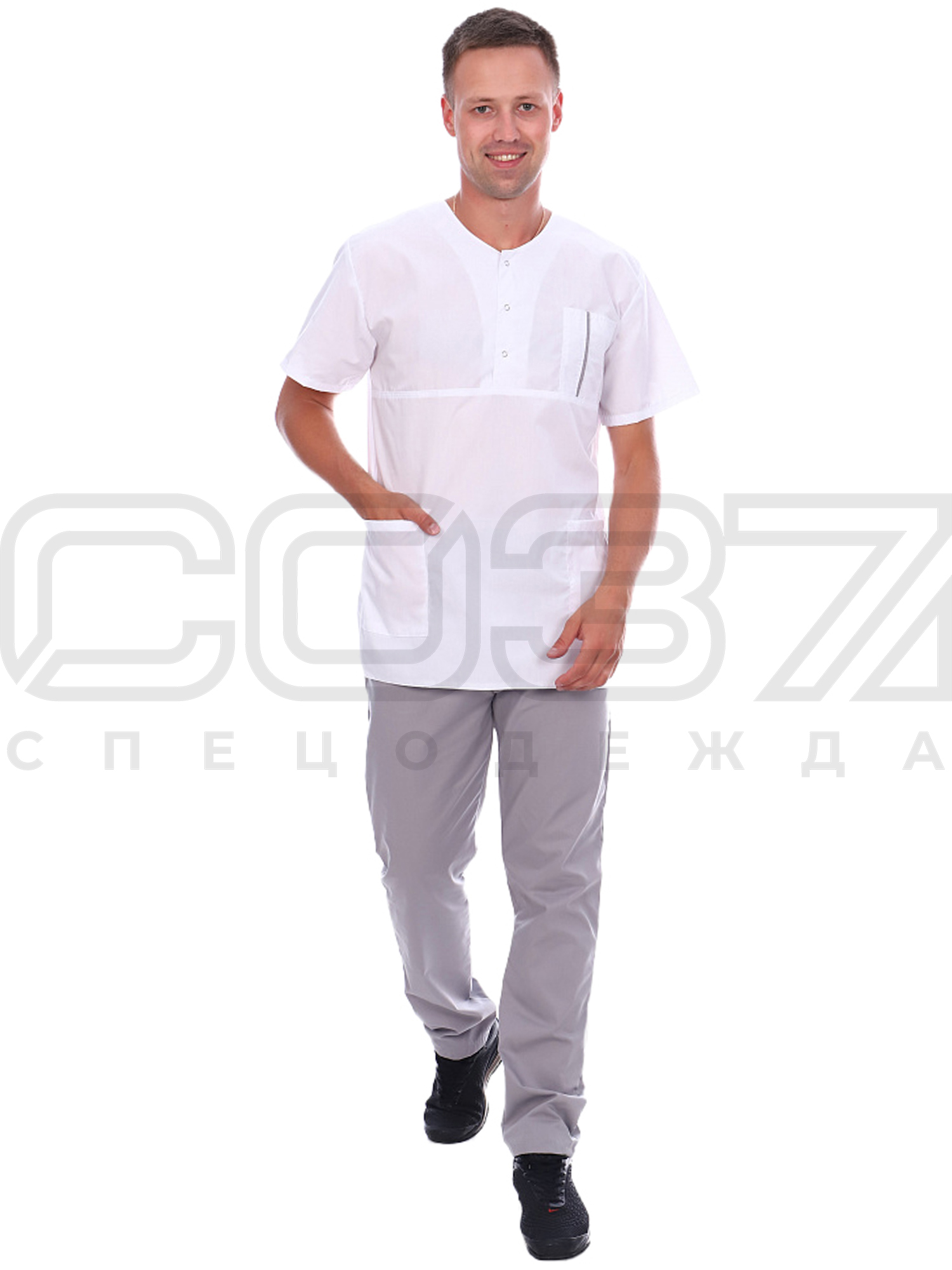 Костюм медицинский мужской АР60 цв.белый/серый тк.тиси в Уфе