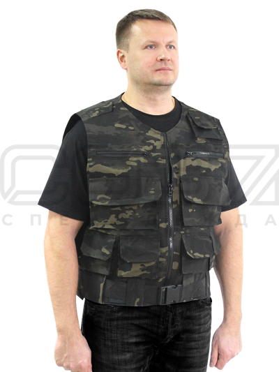 Жилет летний "Сайга" цв.мультикам/чёрный тк.рип-стоп в Уфе