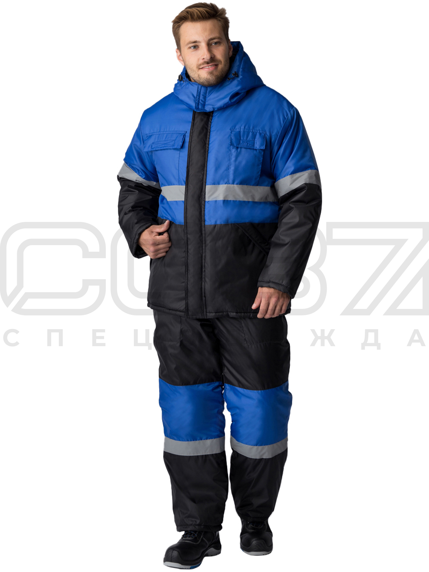 Костюм рабочий зимний "Дрейф" с СОП цв.василёк/чёрн тк.оксфорд (куртка+пк) в Уфе