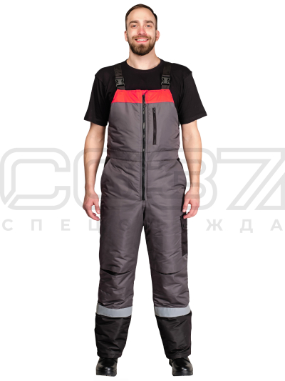 Полукомбинезон рабочий зимний "Азимут" с СОП цв.серый/красн/черн тк.таслан в Уфе